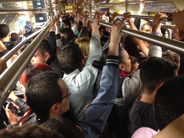 E sempre conversamos sobre algum assunto e hoje foi muito engraçado, ele disse: Cara hoje o trem tava abarrotado e tinha uma fofinha bem na minha frente, quando ele diz fofinha quer dizer gordinha, e ela estava incomodada virava de um lado para o outro tentando se acomodar, quando o trem para em uma estação é um tumulto até para descer existe dificuldade e um empurra o outro na ânsia de sair e muitas vezes sai arrastando quem não quer descer e ai ela disse: Ai! Moço não me leva para fora não, isso é muito cômico nessa hora eu ri muito.